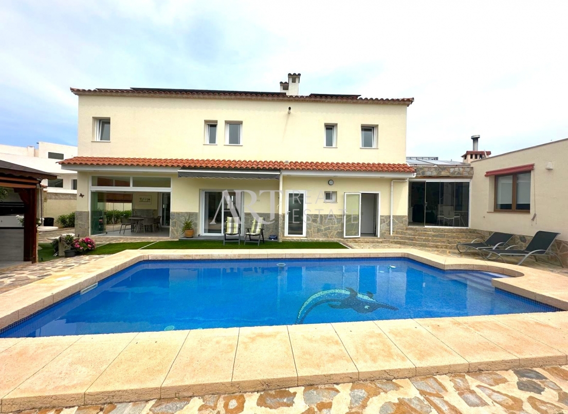 A solo un kilómetro de la playa, esta espectacular y única propiedad se encuentra en el corazón del Albir. Una propiedad con mucha privacidad. Chalet recientemente renovado, ofrece dos unidades independientes en la misma parcela, lo que la convierte en una excelente opción para una familia numerosa, una residencia vacacional o una doble residencia. La distribución de la vivienda consta de seis amplios y luminosos dormitorios, siete baños completos y aseos, modernos y funcionales. Dos amplios salones, ideales para reuniones familiares o para relajarse tranquilamente. Tres cocinas totalmente equipadas, una de ellas en el exterior, perfectas para cocinar mientras se disfruta del aire libre. Consta de un amplio jardín privado, cuidadosamente diseñado y con numerosos rincones con encanto. La piscina privada ofrece la solución perfecta para refrescarse en los calurosos días de verano, además de contar con una zona chill-out equipada con sofás y hamacas, ideal para leer, tomar el sol o simplemente relajarse. La casa está equipada con 24 paneles solares, que reducen el consumo energético y mejoran la sostenibilidad y la eficiencia energética.