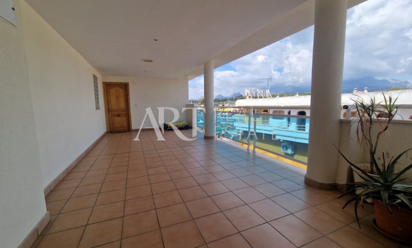 Presenterer en vakker, veldig stor toppleilighet med 2 store soverom. Hovedsoverommet har eget bad og egen balkong med fjellutsikt. Fullt utstyrte garderober i hele leiligheten og rikelig med lagringsplass. Du har en stor stue som fører ut til en annen stor balkong. Kjøkkenet er fullstendig renovert og har 2 store vinkjøleskap, 2 amerikanske kjøleskap og alle moderne hvitevarer. Kjøkkenet fører også ut til den tredje balkongen med fjellutsikt. Det er et andre kjøkken/vaskeriområde og også en ekstra bod. Komplekset er inngjerdet og sikkert med et intercom-system og en lukket privat garasje med plass til 1 bil inkludert i prisen. Du har mulighet til å kjøpe en ekstra plass om nødvendig. Det er et herlig felles svømmebasseng med gress og trær for å slappe av. Dette er en engangs og sjelden mulighet til å eie en av de største toppleilighetene i Albir.